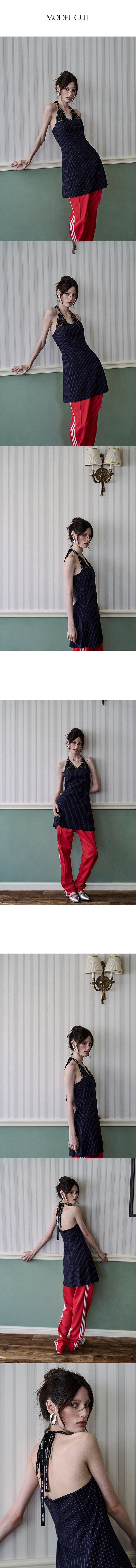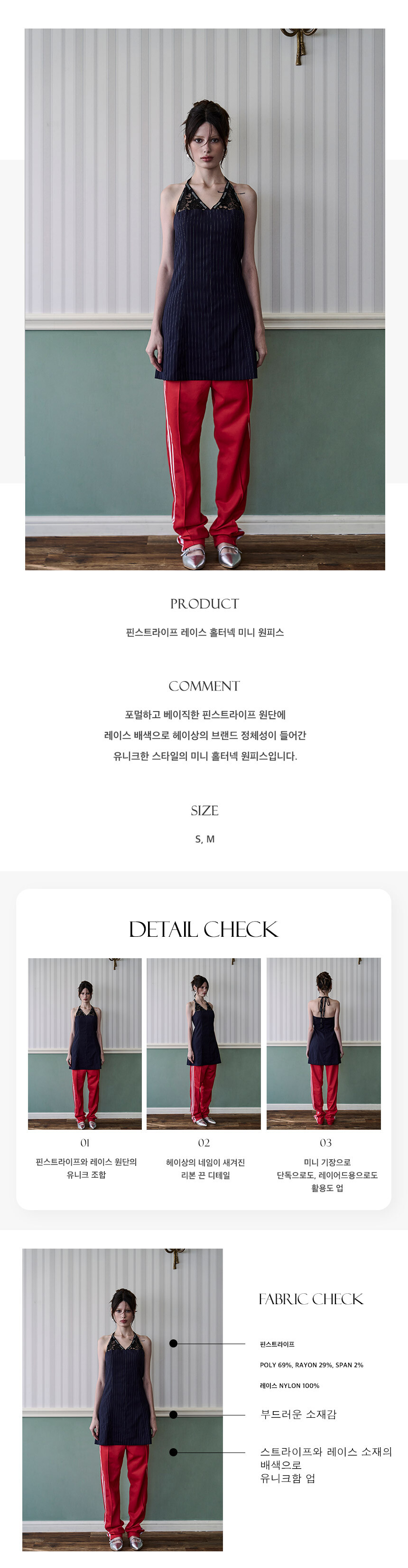 [10월 31일 출고] PIN-STRIPE LACE HALTERNECK MINI DRESS