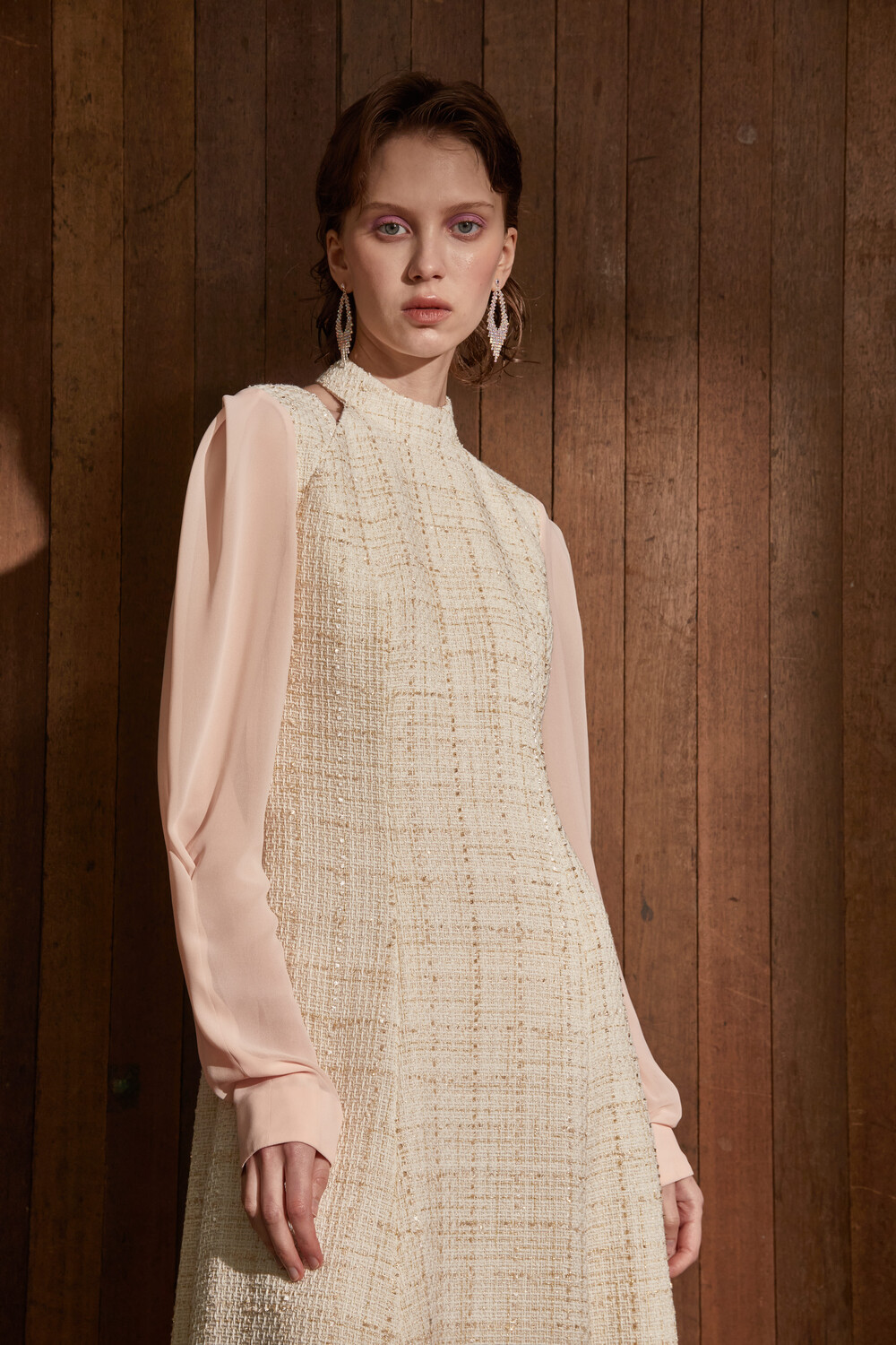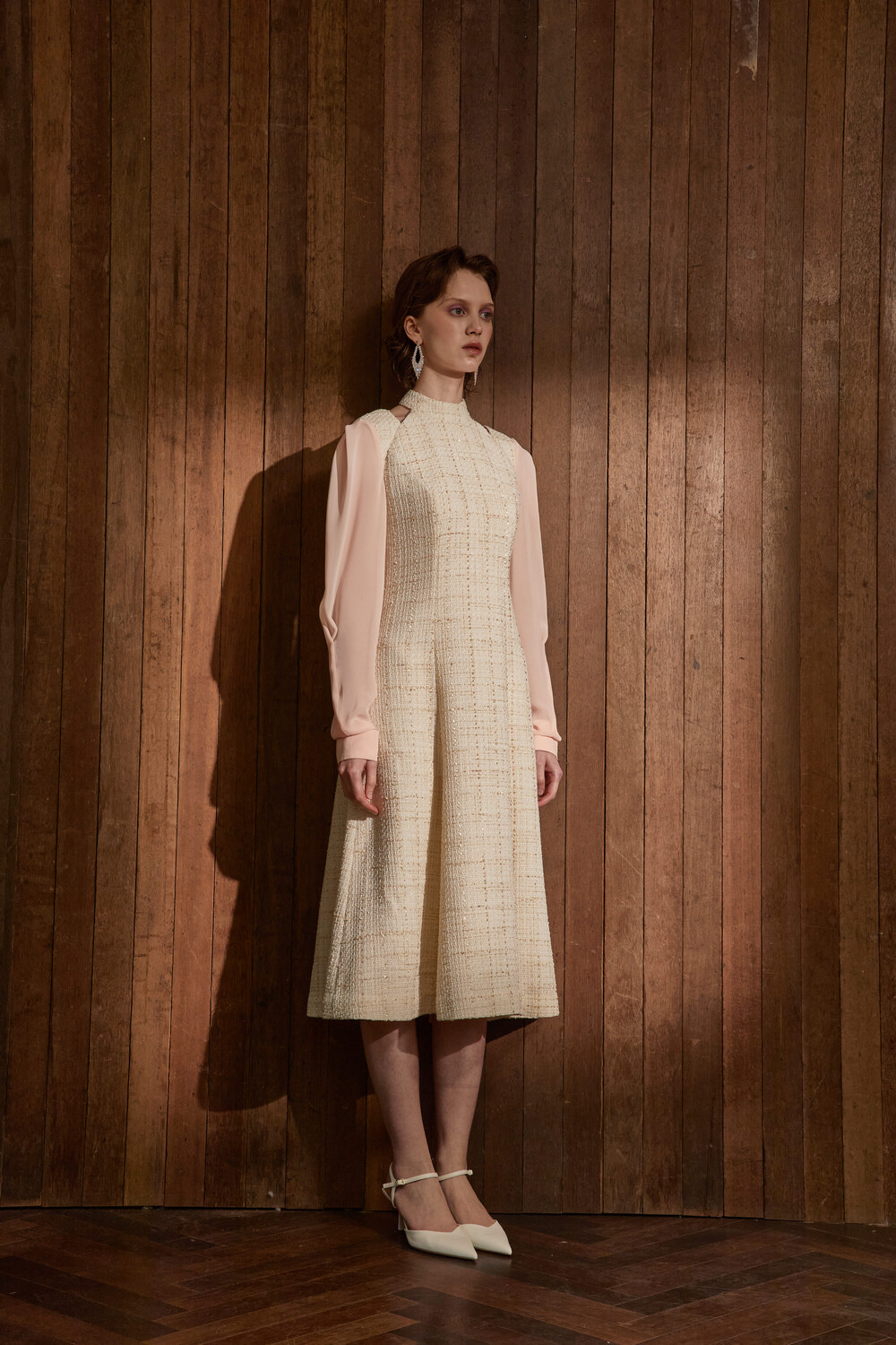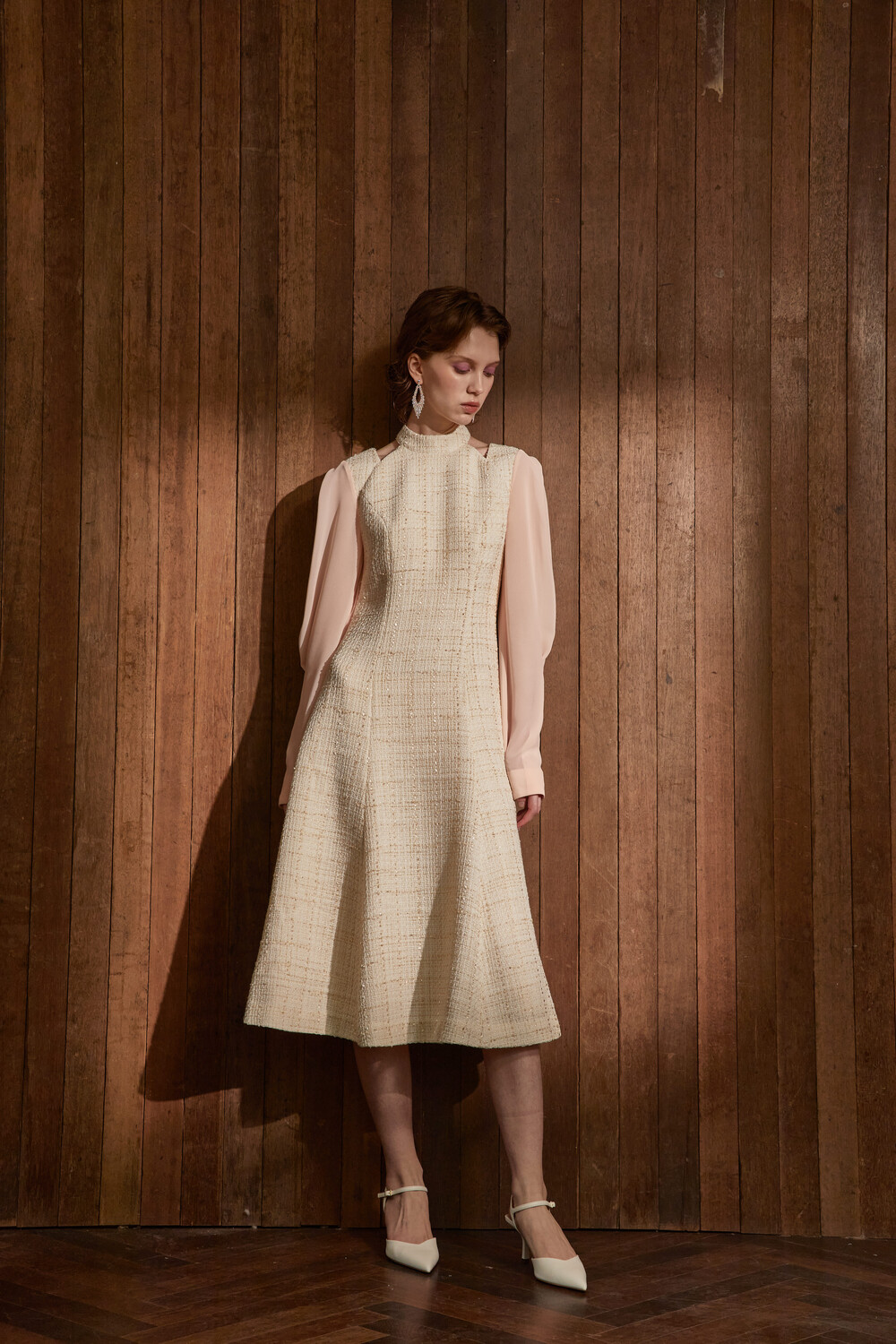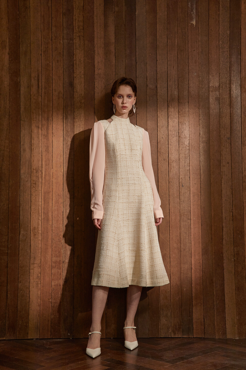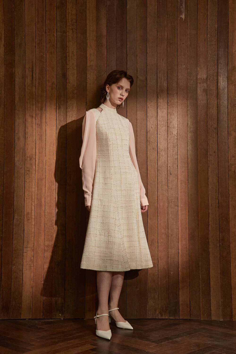 고급스러운 무드의 트위드 홀터넥 드레스입니다.