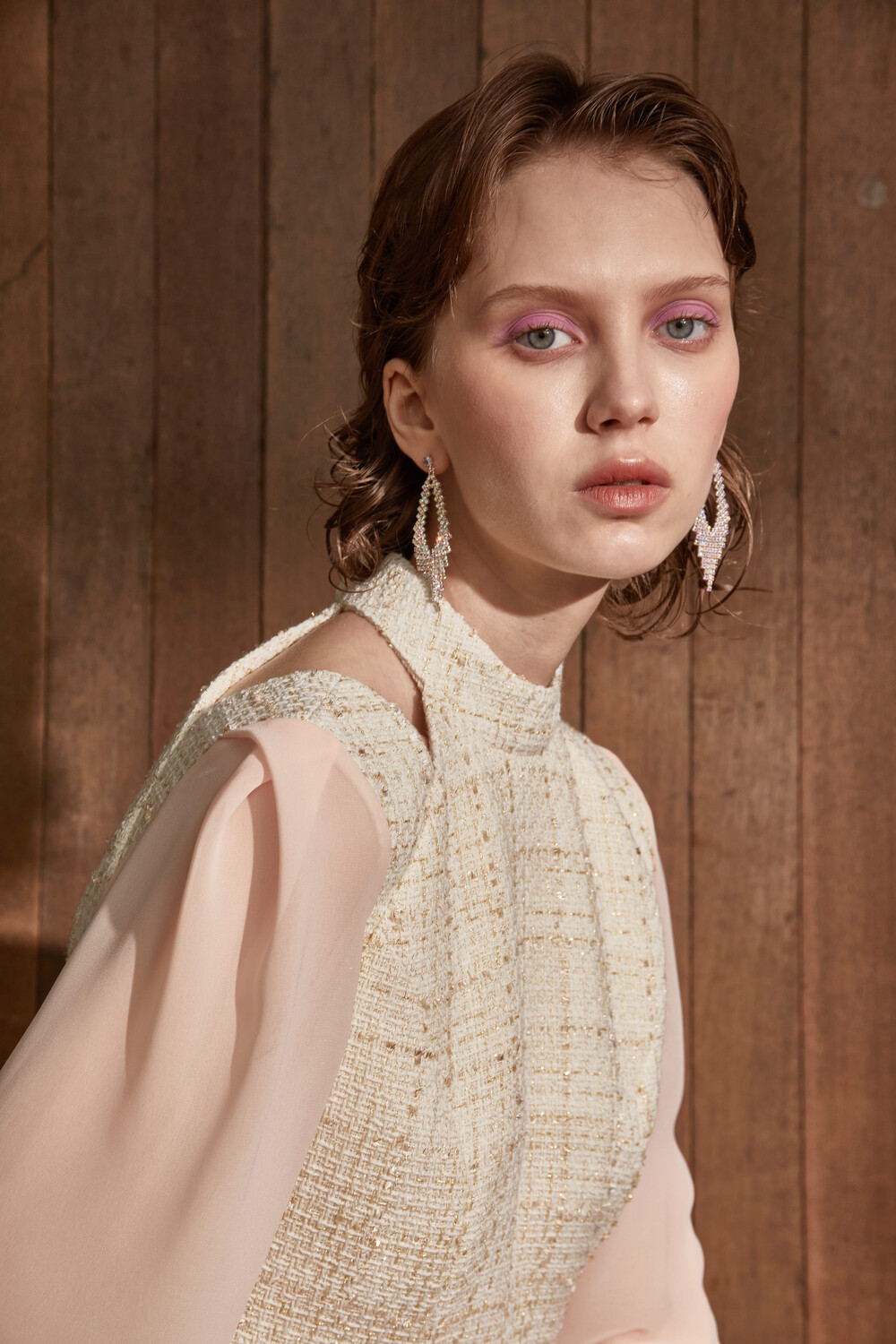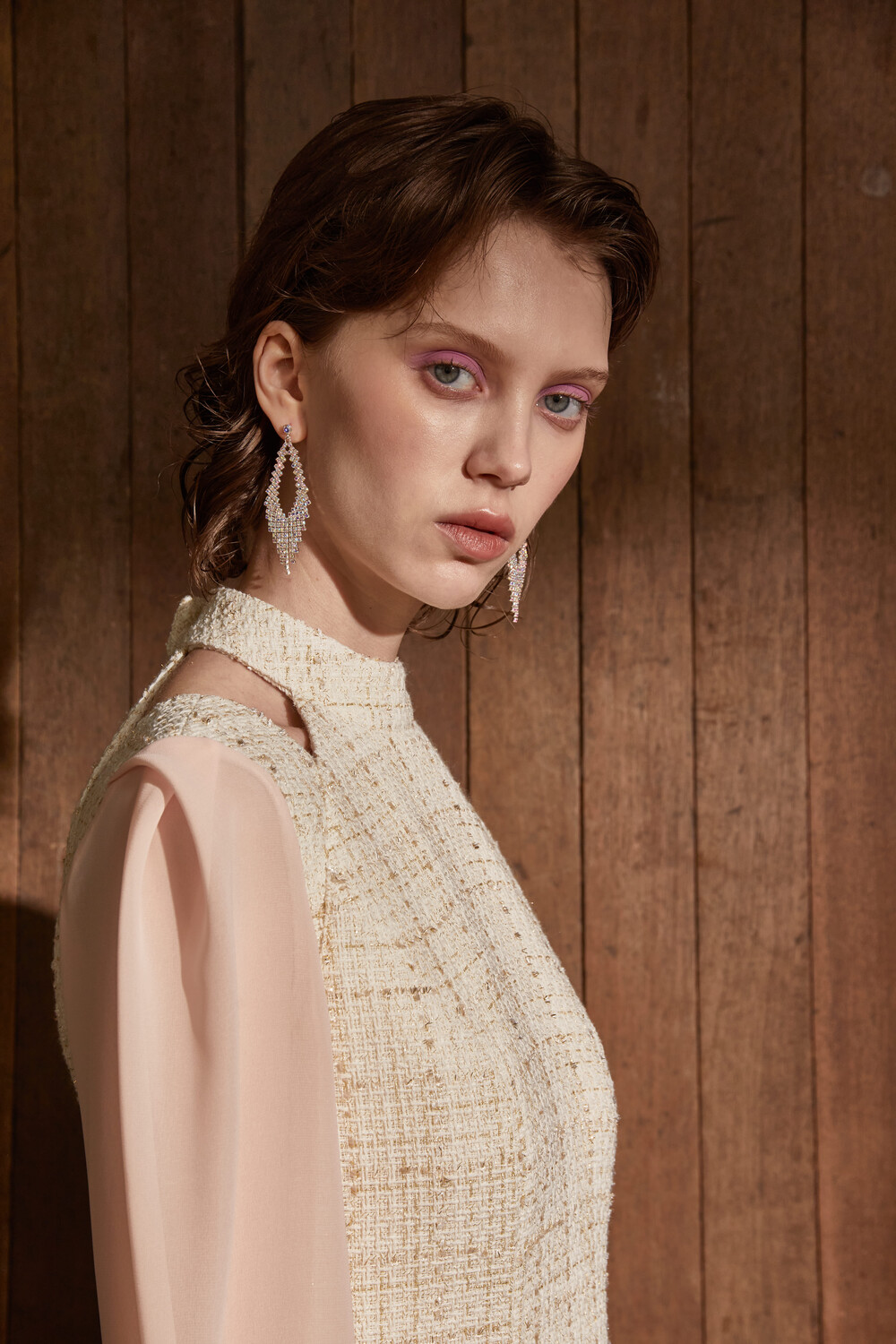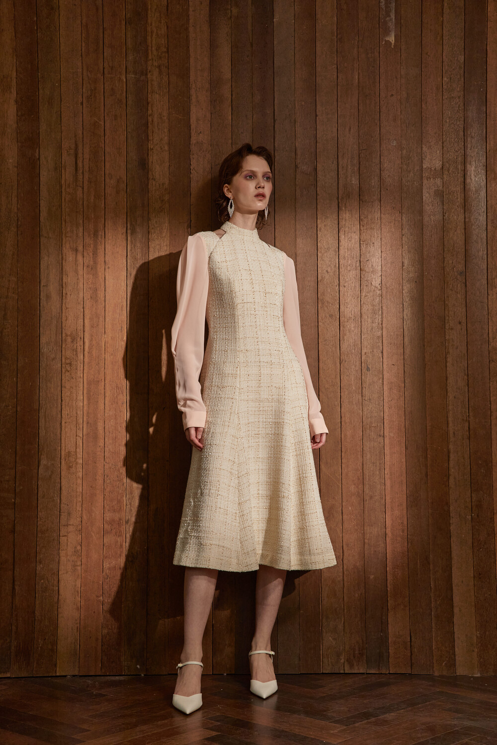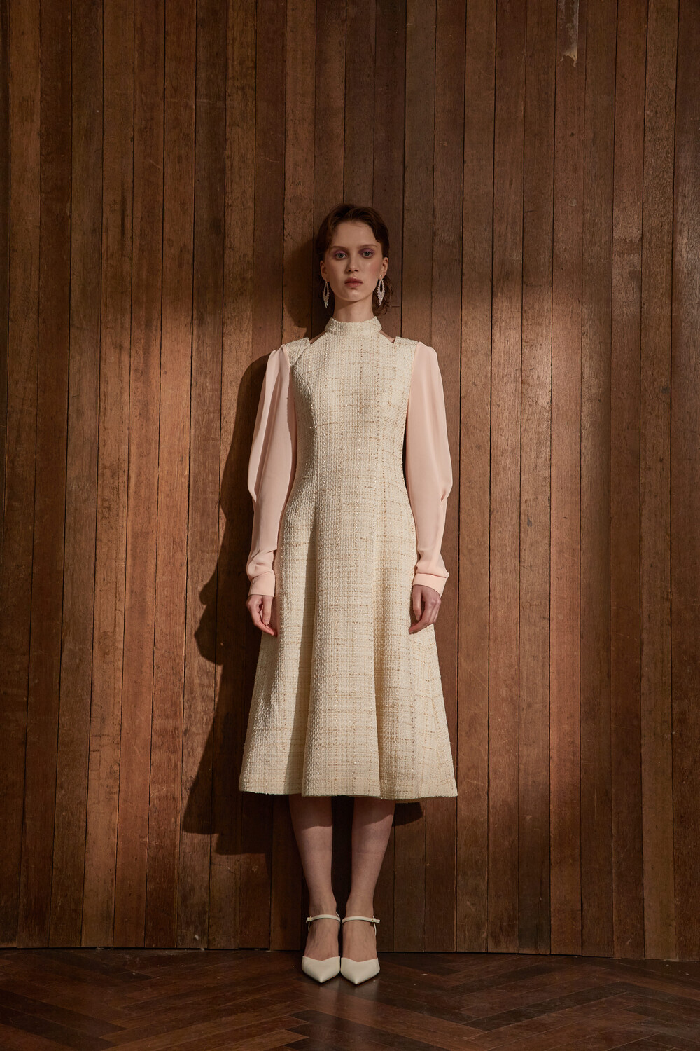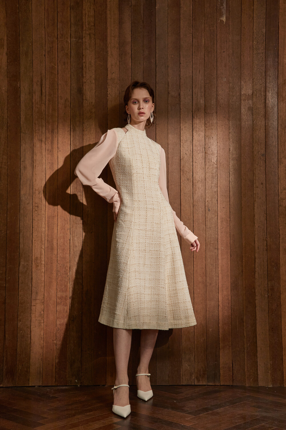 고급스러운 무드의 트위드 홀터넥 드레스입니다.