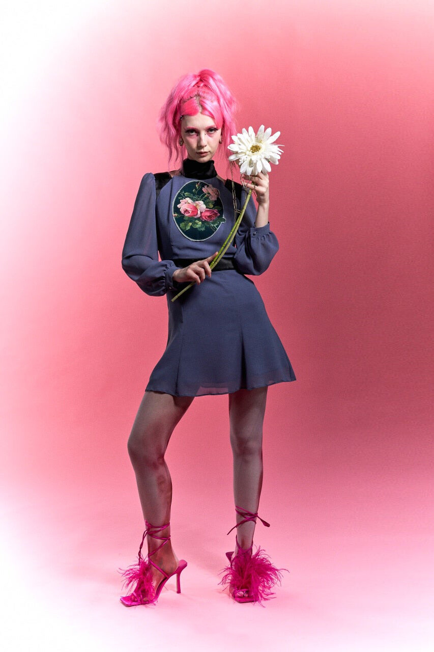 빈티지한 로즈 프레임 프린팅이 돋보이는
