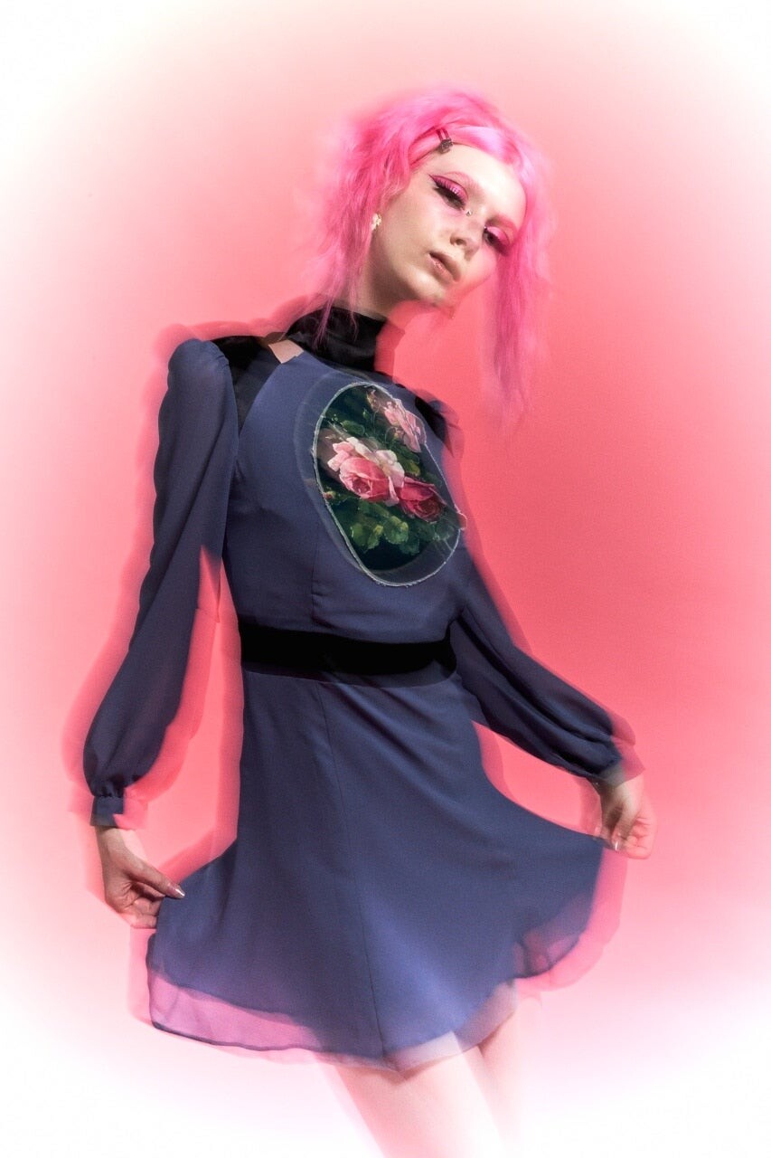 Vintage Roseframe Ribbon Halterneck Dress